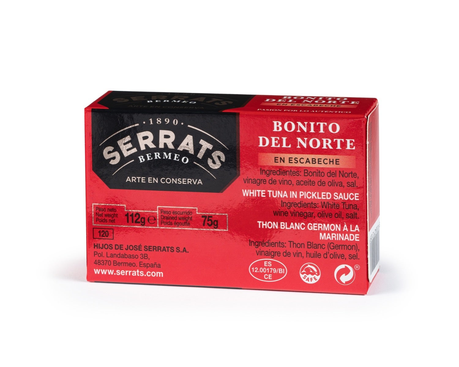 Lomos de Bonito del Norte de la costera del Cantábrico. En Conservas Serrats los seleccionamos cuidadosamente. Cubiertos de escabeche, te los presentamos en envase metálico.