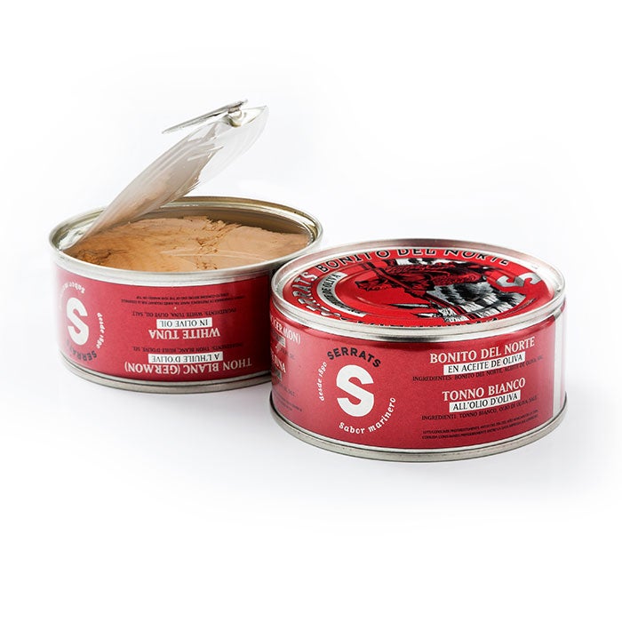 Lomos de Bonito del Norte de la costera del Cantábrico. En Conservas Serrats los seleccionamos cuidadosamente. Cubiertos aceite de oliva, te los presentamos en envase metálico.