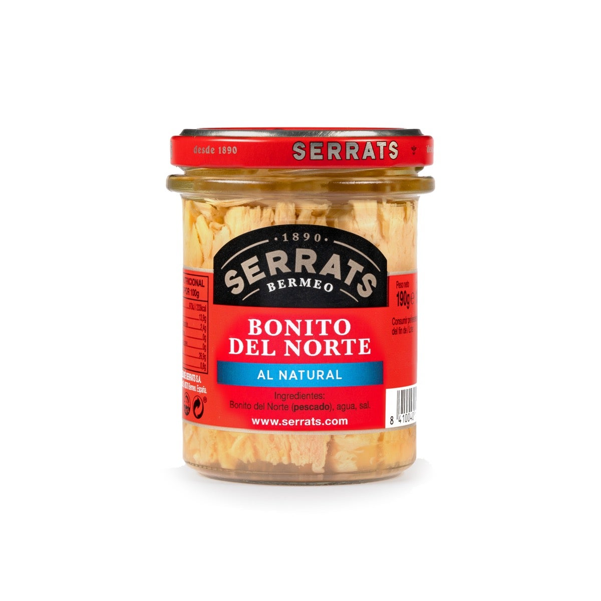 Lomos de Bonito del Norte de la costera del Cantábrico. En Conservas Serrats los seleccionamos cuidadosamente. Envasados al natural, sin aceite, para hacerlos aún más saludables. Te los presentamos en frasco de cristal.