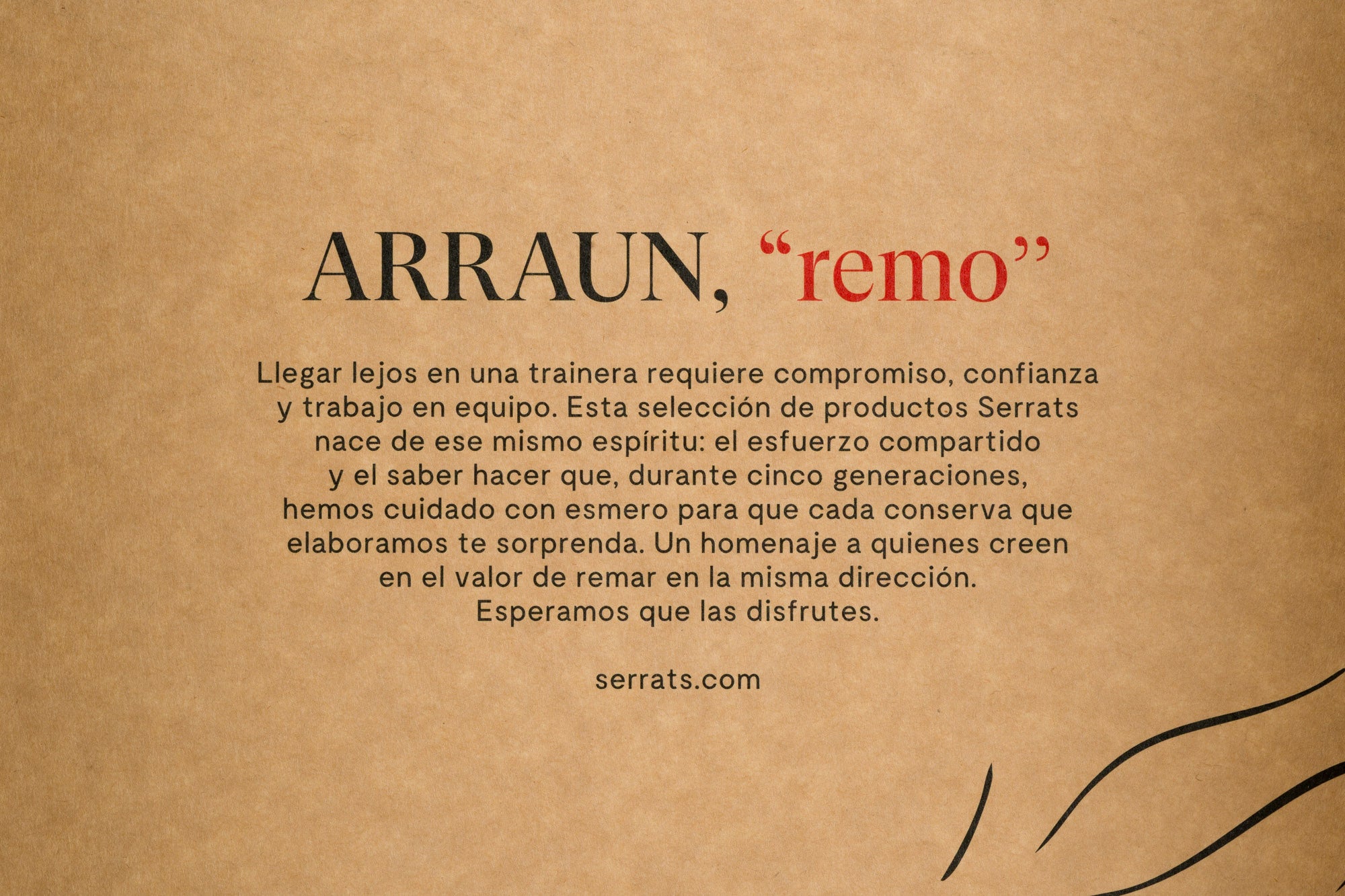 Esta selección de productos Serrats está inspirada en una “trainera”. Porque llegar lejos en una trainera requiere confianza y trabajo en equipo. Esfuerzo compartido y el saber hacer que durante cinco generaciones hemos cuidado con mucho mimo. Es un homenaje a quienes creen en el valor de remar en la misma dirección. Estamos seguros que las vas a disfrutar muchísimo.