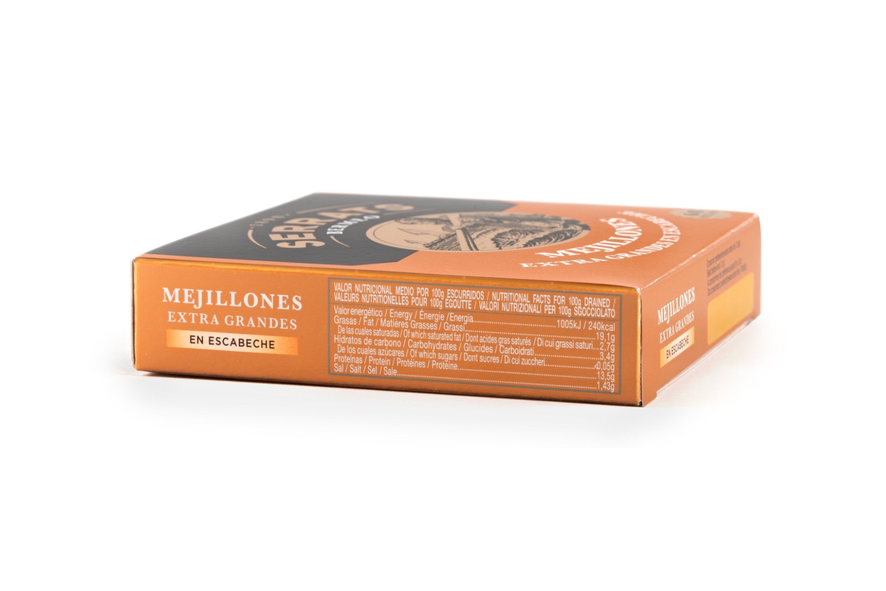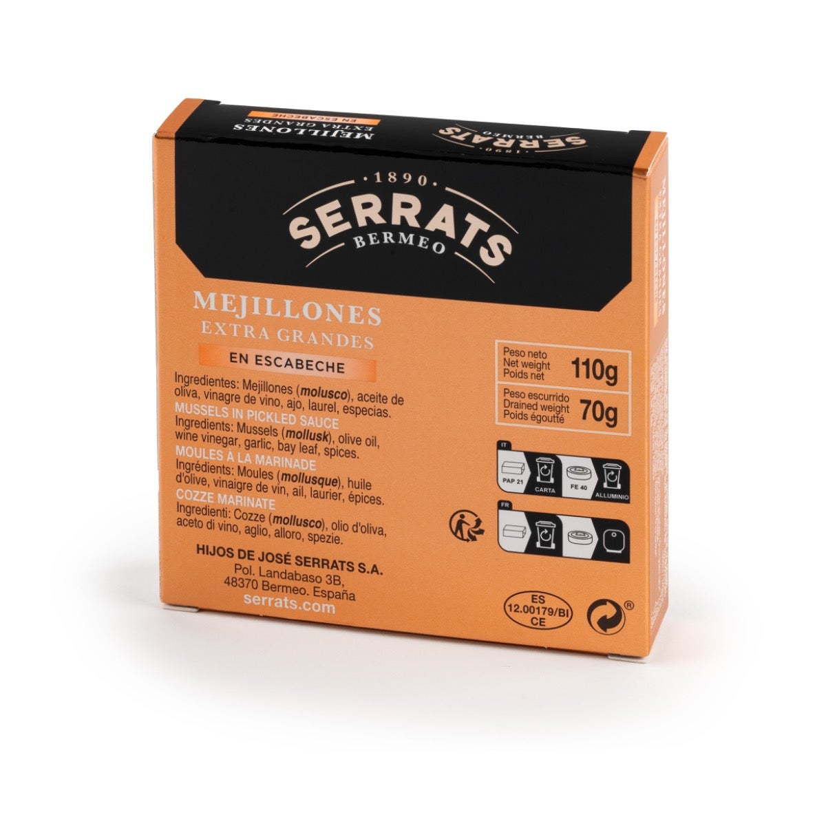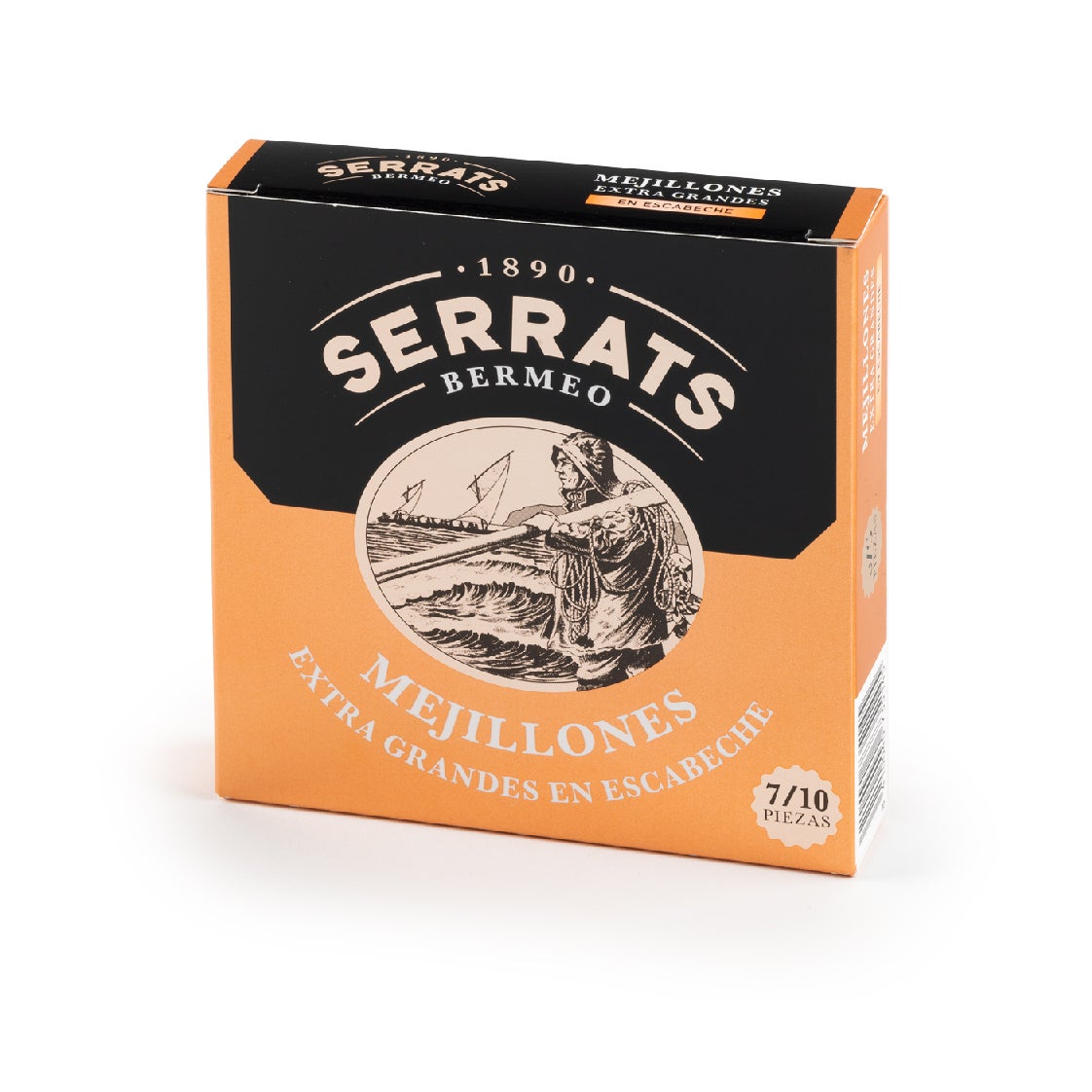 En Conservas Serrats, seleccionamos cuidadosamente los Mejillones de tamaño grande. Cubiertos con nuestro escabeche artesanal, te los presentamos en envase metálico.