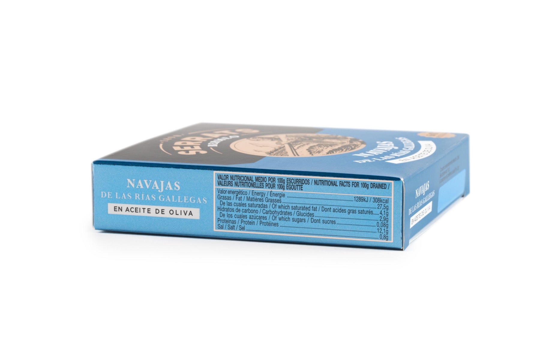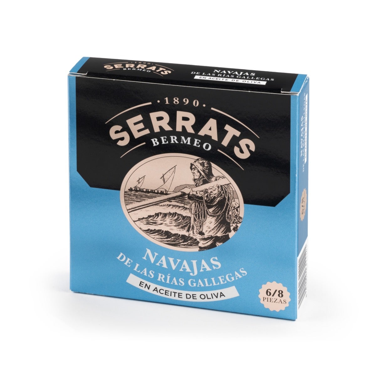 El punto de partida para la elaboración de las Navajas en aceite de oliva consiste en la selección de las mejores materias primas. Conservas Serrats adquiere las navajas de las Rías Gallegas en el momento óptimo y cuando han alcanzado la talla deseada. Las navajas se limpian a mano de una en una, se cuecen al vapor y se envasan en el mejor aceite de oliva. El tiempo transcurrido entre la captura y la conserva es mínimo, de este modo se garantizan unas navajas que mantienen intacta toda su riqueza y propiedades.