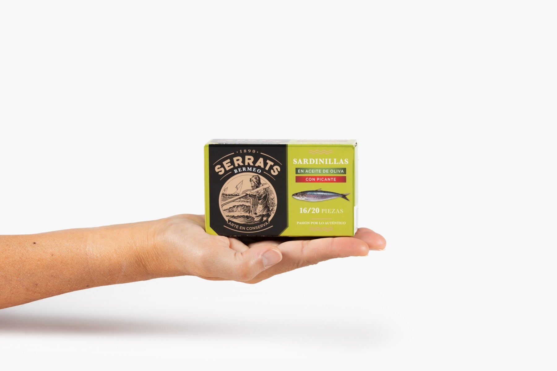 El punto de partida consiste en la selección de las sardinillas. En Conservas Serrats elegimos las sardinillas frescas, piezas pequeñas y de gran calidad. Cortadas, descabezadas y limpiadas a mano, las sardinillas se tuestan al vapor y se envasan en aceite de oliva con un toque picante. El tiempo transcurrido entre la captura y la conserva es mínimo, de este modo garantizamos un producto que mantiene intacta toda su riqueza y propiedades.