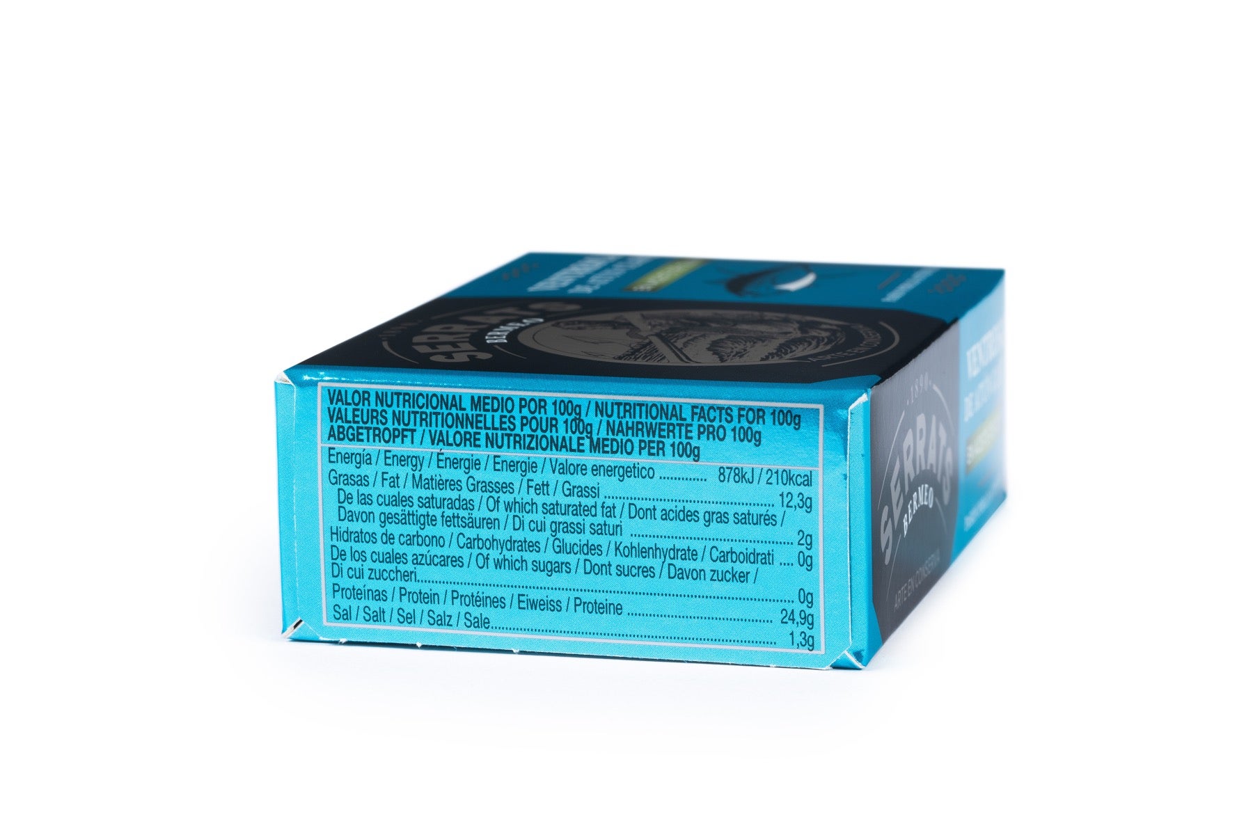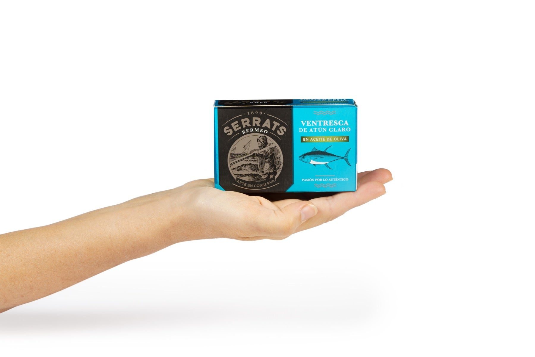 Para la elaboración de esta lata de ventresca, utilizamos la parte de textura más suave y delicada del Atún Claro. La ventresca es la zona situada en la parte inferior del pescado, la que está cerca de la cabeza, y es sin duda la parte más jugosa y sabrosa. La ventresca es un auténtico lujo dentro de las conservas de Atún Claro. Para finalizar, le añadimos a la ventresca nuestro aceite de oliva especialmente seleccionado. Este aceite, con su sabor intenso, añade a nuestra ventresca un aroma y sabor exclusivo.