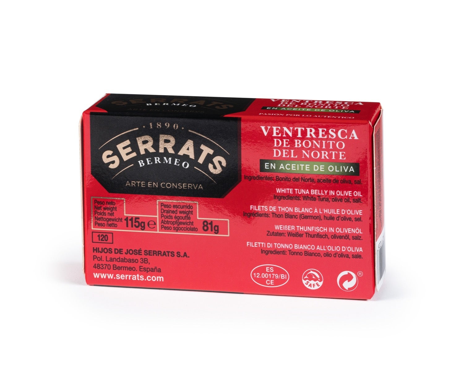 Ventresca de Bonito del Norte de la costera del Cantábrico. En Conservas Serrats la seleccionamos cuidadosamente. Cubierta de aceite de oliva, te la presentamos en envase metálico. Suave y jugosa, es un auténtico lujo de conserva.