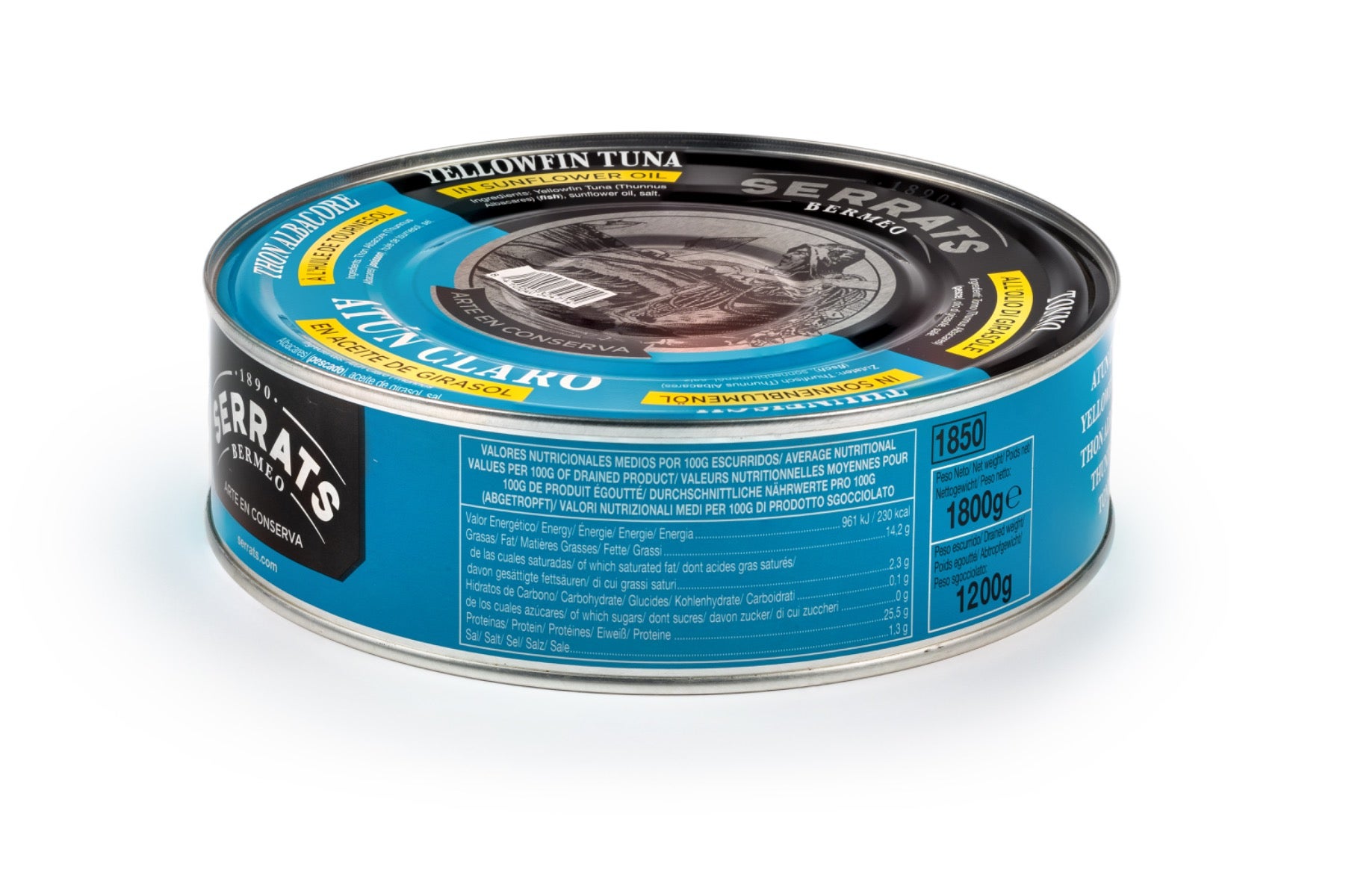 Thon Albacore à l’huile de tournesol. Conserves de 1800g.