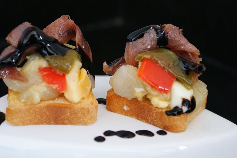 Canapé de escalibada con anchoas del Cantábrico de Conservas Serrats